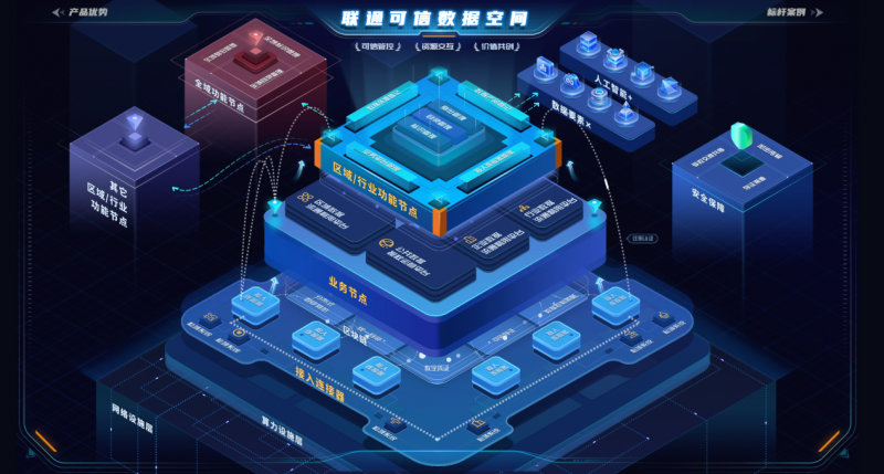 联通数智按照统一身份认证、统一目录标识、统一接口要求的“三统一”原则,构建数据基础设施产品,完成了联通可信数据空间的产品建设,包括全域功能节点、区域/行业功能节点、业务节点、接入连接器。