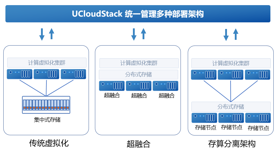 三种架构可在UCloudStack中共存并统一管理,现有VMware环境无需调整即可接入,保障替换过程的平滑与安全。