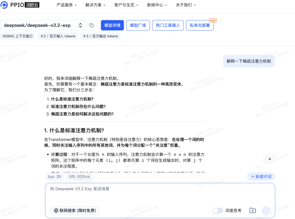 9月29日晚,DeepSeek发布新版本模型DeepSeek-V3.2-Exp,PPIO已于当日首发上线!