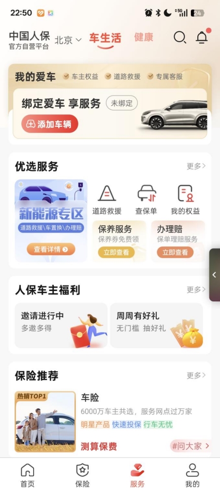 过去,车险中捆绑的“车主权益”常被忽视。如今,保险公司正努力将这些权益“显性化”。就像“中国人保APP”的“服务”板块,平台集中展示了车主可享有的“道路救援”、“代办年检”、“代驾服务”等权益。若车主充分激活这些服务,一年预计可节省不小的开支。