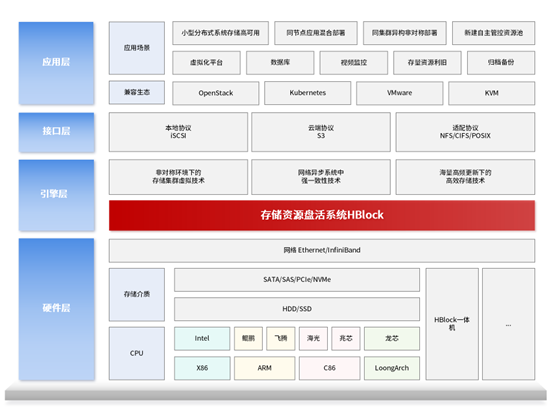 在多行业实践中,HBlock已经把“盘活存量资源”从开创性概念转化为可复用的落地路径。某头部媒体曾受冷数据存储难题困扰,通过 HBlock整合老旧服务器存储资源,显著降低成本的同时,为媒资数据提供了稳定的存储服务;重庆某征信公司、徐州某局等机构面临紧急扩容需求时,HBlock实现当天受理、当天交付,无缝对接现有业务平台;西北某地市通过该系统盘活超100台闲置服务器,未新增一块硬盘即实现可用存储容量 25% 的提升。在高性能计算领域,HBlock与并行文件系统混合部署于GPU服务器,可替代昂贵外置SAN设备,为高校、科研机构的AI训练等场景降低30%以上存储成本。