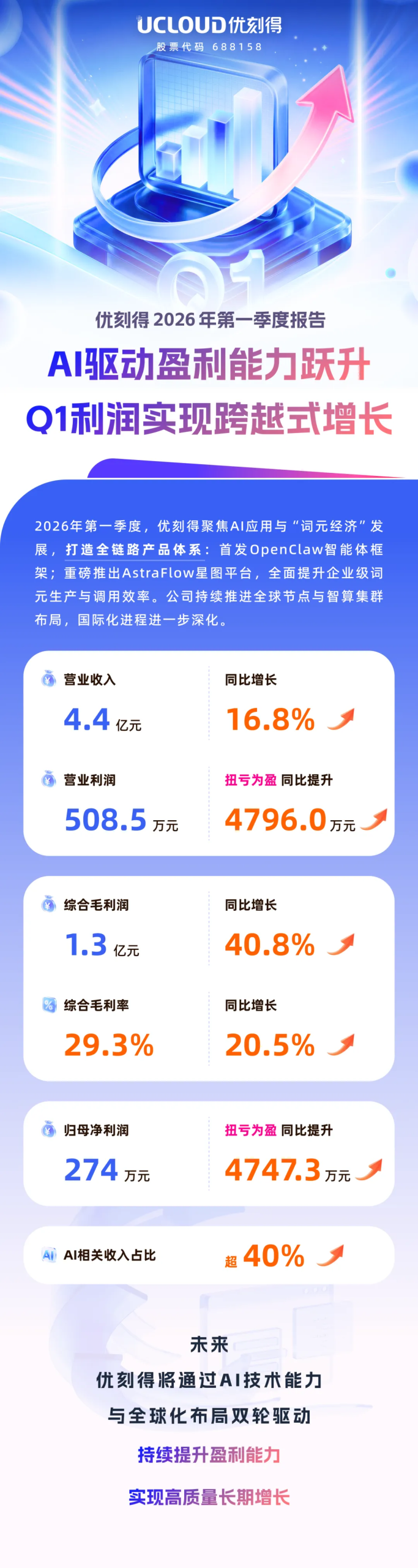 优刻得2026Q1报告:利润同比扭亏为盈,实现跨越式增长