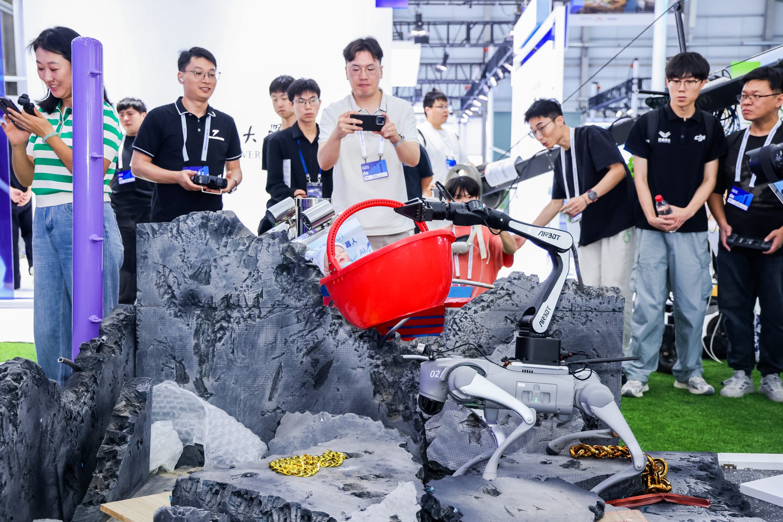 今年外滩大会期间,在蚂蚁集团主办的AI科创赛“机器人职业技能表演赛”中,机器人轮番登场,在模拟真实工业与救援场景的高难度任务中展开角逐,为现场观众展示了机器人如何成为高危行业必须可少的助手。
