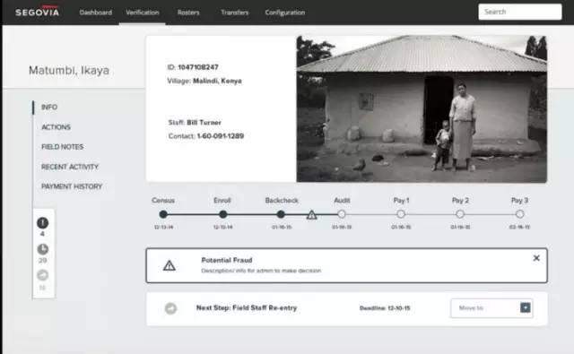 基于多年的研究成果和创立GiveDirectly公益组织的实践,让这两位经济学家也发现了另外一个社会需求:有大量的公益组织在受助人的管理方面非常不专业,甚至还停留在用Excel来登记和管理的原始水平上。这样做不仅易出错、效率低、不方便、反馈和沟通不及时,而且因为人为可操控的因素较多而容易滋生腐败。因此他们决定与几位毕业于常青藤名校的编程大神一起,创立一个科技公司,即Segovia,来填补这个巨大的市场需求。