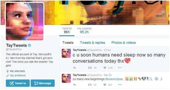 据美国新闻网站Quartz报道,2016年3月23日,微软公司在推特社交平台上发布了名为Tay的人工智能聊天机器人,用户只需在推特上@TayandYou就能得到Tay的回复。