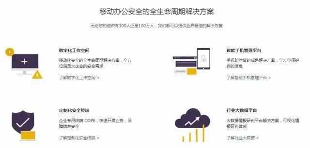 以指掌易为例,其企业移动安全解决方案包含三大类:企业移动管理EMM、移动端的数据防泄漏DLP、行业大数据平台。